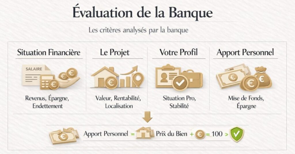 Quand vous sollicitez un crédit pour un investissement locatif, la banque ne se limite pas à vérifier que vous pouvez rembourser la mensualité. Elle évalue trois dimensions simultanément :